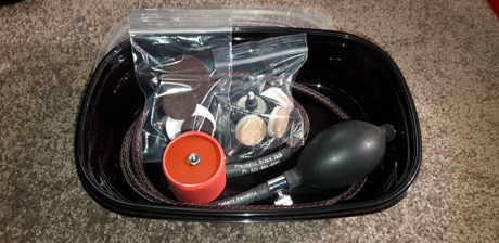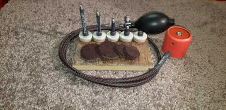 by a hand bulb pump connected to a 3' hose